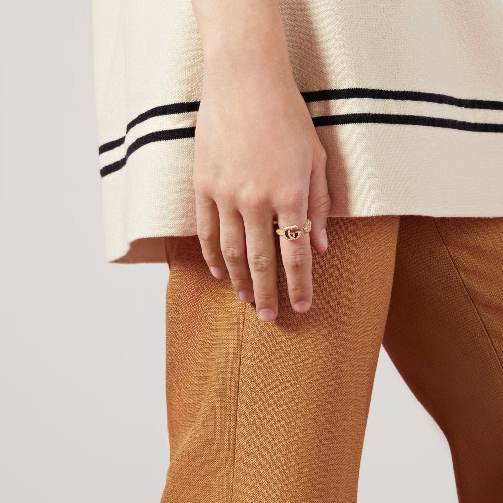 - تتويجاً لفكرة ترك قواعد الموضة القديمة، تحقق مجموعة Epilogue الكمال من خلال القطع التي تختبر مفهوم الوقت. تُبهجنا هذه الحلقة البرميلية المرصعة بالكريستال على شكل مفتاح والمعززة برأس G المزدوج بأسلوب معاصر لتصميم مستوحى من القطع العتيقة.